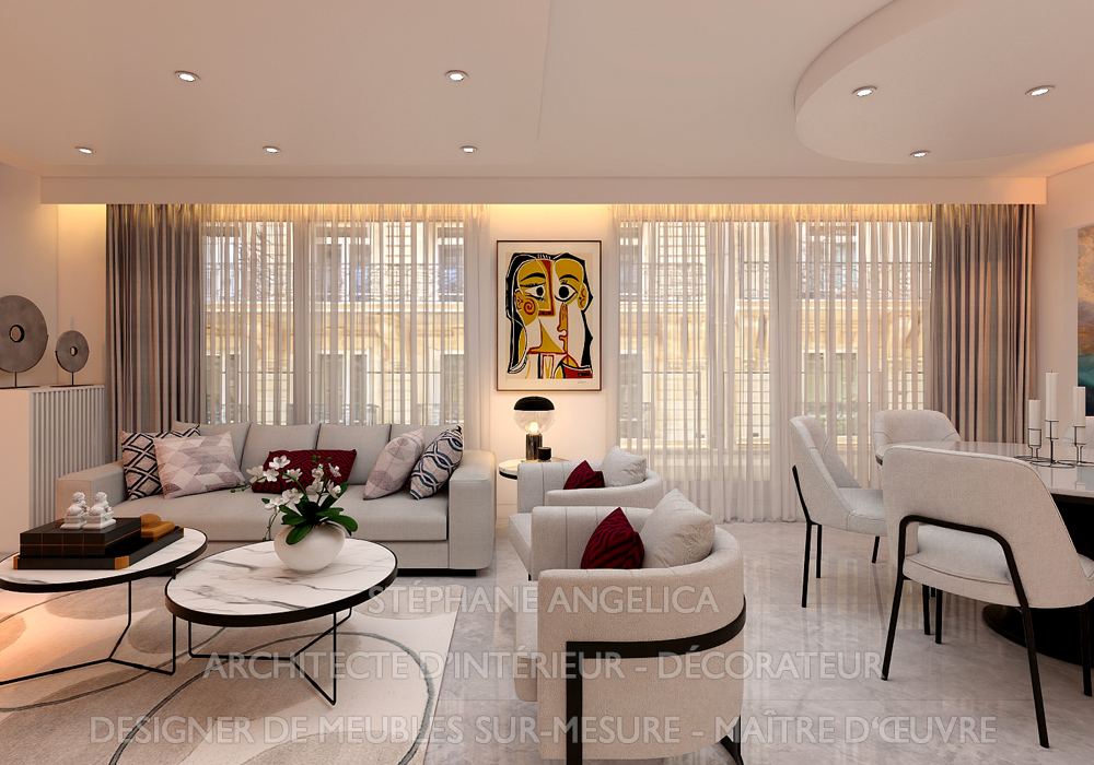 L'agence Stéphane Angelica met à votre service des conseils en décoration et des idées pour vos travaux de rénovation. Il se déplace sur rendez-vous à Paris (75), en Seine-et-Marne (77), dans les Yvelines (78), l'Essonne (91), dans les Hauts-de-Seine (92), en Seine-Saint-Denis (93), dans le Val-de-Marne (94), le Val-d'Oise (95), l'Oise (60), l'Eure-et-Loir (28), les Alpes-Maritimes (06), le var (83) et autres grandes villes de France. Il intervient pour tous types de projets, petits ou grands, tels que la réhabilitation complète ou partielle et de remise aux normes de biens immobiliers.